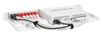 Elke RJ-45 connector en de console poort is toegankelijk op het voorpaneel. De RM-FR-T21 rackmount kit is 1U hoog. Montage duurt ongeveer 5 minuten. Schuif uw Fortinet in de kit, plaats de houders en sluit de meegeleverde kabels aan op de keystones. De RM-FR-T21 wordt geleverd in RAL 9003 (wit).